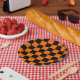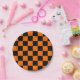 Diseño de patrones de cuadrados geométricos de comprobación de naranja y negro