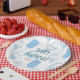 Este lindo plato de papel fiesta de cumpleaños presenta un fondo blanco con patrones de helados pintados a mano en azul claro. ¡Perfecto para las celebraciones de verano! Cambie el color de fondo y personalice sus necesidades. Puedes encontrar más productos a juego en mi tienda.