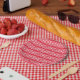 Patrón de estrellas blancas Festividades rojas Navidades Papel Placas Feliz Navidad, Felices Fiestas