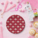 Plato De Papel Patrón de flor de plata de lis en fondo rojo