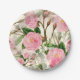 Plato De Papel Patrón de flores, hojas y barras rosadas