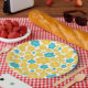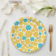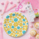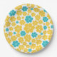 Plato De Papel Patrón de flores - Turquesa y amarillo