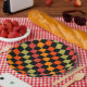 Plato De Papel Patrón de Gingham de naranja Black Checkered