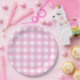 Este patrón de gingham rosa bonito añade un acento tierno y campestre a un fiesta de verano, cumpleaños u otra ocasión. Se muestra aquí en un plato de fiesta de papel. Ajuste el patrón de la forma que desee y personalizar con cualquier texto. Primavera y verano son el momento perfecto para celebrar con este clásico diseño de cheques.