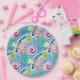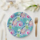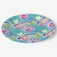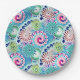 Plato De Papel Patrón de giro fractal, turquesa, rosa, múltiple