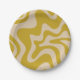 Plato De Papel Patrón de giro líquido retro en mostaza amarilla