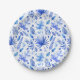 Plato De Papel Patrón de hojas tropicales azul cobalto 7"