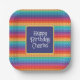 El plato fiesta de papel colorido presenta un patrón de pop arcoiris que se parece a juguetes y accesorios populares de peluche / sensorial. Personalizar con nombre o mensaje en el cuadrado de texto central.