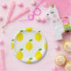Placa de papel de patrón de limones de diseño plana amarillo.
