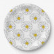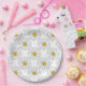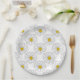 Placas de papel impresas con un patrón original de margarita dibujado a mano.
