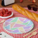 Plato De Papel Patrón de mosaico del arcoiris pastel