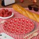 Plato De Papel Patrón de Navidades elegantes en rojo