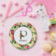 Plato De Papel Patrón de Navidades Monograma P inicial Personaliz
