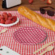 Plato De Papel Patrón de ondas Art Deco - rojo y fucsia