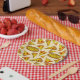 Eche un vistazo a este diseño con un patrón de pizza de queso fundido.