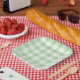 Plato De Papel Patrón de plástico de Gingham verde pálido