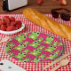 Envía un montón de sonrisas y alegra a tus seres queridos el día con este lindo patrón de ranas en un fondo rojo.