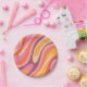 Mostaza de Naranja púrpura rosa patrón abstracto retro. Estética psicodélica de los años 70 del Trippy. Colores modernos de época. El diseño único del arte fresco y moderno boho contemporáneo y ondulante diseño de remolinos ondulados; luminoso, colorido y con un ambiente alegre. Por Kierkegaard Design Studio.