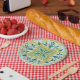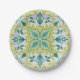 Plato De Papel Patrón de Vino y Flor Turquesa Amarillo Morris