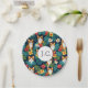patrón de estilo de camisas hawaianas de gato jengibre tropical repetir plato de papel, amantes de gatos verde, marina, lindo gatito raro y divertido fácil de personalizar con inicial