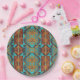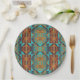Hermoso diseño contemporáneo verde azulado, naranja, azul turquesa acuático y marrón nativa de mosaico indio americano.