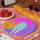 Neon Sprinkle y Ice Cream chapa de cumpleaños en un fondo degradado
