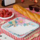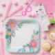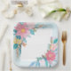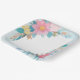 Hermoso plato de papel cuadrado adornado con motivos florales, perfecto para servir tentempiés en su próximo evento.