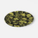 Plato De Papel Patrón floral antiguo negro y amarillo