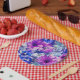 Plato De Papel Patrón floral azul magenta rosa