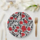 Plato De Papel Patrón floral de bonito en rojo, negro y blanco
