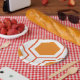 Plato De Papel Patrón geométrico abstracto hexagonal en naranja y