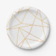 Plato De Papel Patrón geométrico dorado de líneas blancas