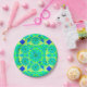 Plato De Papel Patrón Mandala, turquesa, azul, verde limón