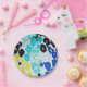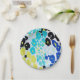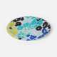 Huella animal divertida y vibrante de leopardo (o cheetah). Los colores son verde limón claro, azul, negro y turquesa.