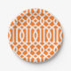 Plato De Papel Patrón Naranja moderno y enrejado blanco