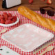 Si se preguntan qué combinaciones de colores elegir para la decoración de sus Navidades y los suministros de envoltura de regalos este año, he creado colecciones de patrones de coordinación para hacer la vida un poco más fácil. Este llamativo diseño de placas de papel de árboles de abetos delineados en un estilo minimalista se muestra aquí en blanco sobre un suave fondo rosa rubor. Buscar ID1009 para ver otros productos y patrones en este esquema de color.