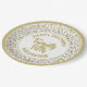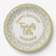 Plato De Papel Patrón número al azar de cumpleaños 25 Oro/Blanco