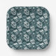 Plato De Papel patrón ornamental floral de cráneo de azúcar azul