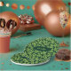 Estrellas de perejil con hojas verdes. Patrón sin foco. Texto personalizado. Color de fondo personalizado.