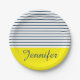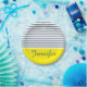 Patrón rayado moderno blanco, azul y amarillo con nombre personalizado