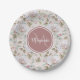 Plato De Papel Patrón rosa rosa pálido con monograma y nombre
