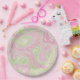 Plato De Papel Patrón rosa Verde De Swirl Líquido