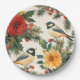 Plato De Papel Patrón Rústico de Navidades de aves y poinsettia (