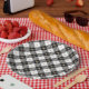 Patrón a cuadros de "leñador" diagonal blanco y negro con una rejilla dorada mate. *Disponible en siete combos de color!