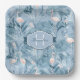 Este plato de papel presenta un magnífico patrón de flamencos rodeados de abundante follaje tropical y orquídeas de color azul polvoriento y rosa rubor. Se ha proporcionado una etiqueta que contiene su nombre y su monograma u otro texto. Busque ID868 para ver otros productos con este patrón tropical fresco.