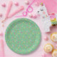 Plato De Papel Patrón verde de tulipanes y mariposas
