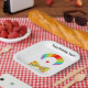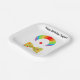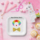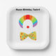 Celebre con estilo con estos brillantes platos de papel de cumpleaños con temática de payaso de color arcoiris. Cuentan con un ilustracion de peluca de payaso arco iris, nariz de payaso roja y corbata de puntito polka amarillo. Estos suministros de fiesta están listos para ser personalizados con su propio mensaje.