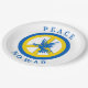 Símbolo de paz azul y amarillo y texto "PAZ-NO GUERRA"