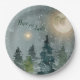 Estas placas de papel elegantes que ofrecen una escena de la acuarela de la luna y de un estrellas brillantes sobre un bosque verde del invierno y las palabras "paz en la tierra" llenarán su hogar de comodidad en el tiempo del navidad. Éstos serían maravillosos para el navidad que recolecta o el fiesta de cena. Otros artículos con este diseño se pueden encontrar en mi paz en la colección del navidad del bosque del invierno de la tierra en mi tienda de Zazzle: