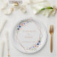 Modern, florale Pappteller zum personalisieren. In den Farben Pfirsich, Blau & Rosé-gold.